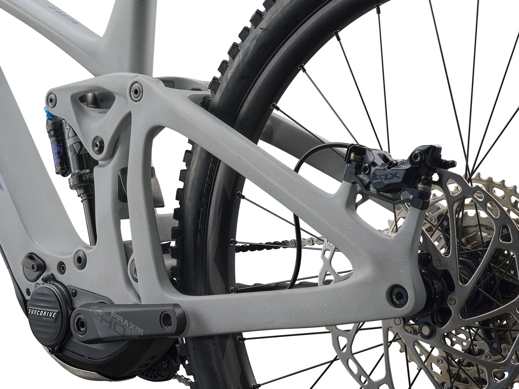 Featuring a modified Maestro suspension system with a new integrated lower link and 170mm of rear travel paired with a 180mm fork, this is best descending E-bike ever from Giant. Maestro’s floating pivot design means it’s always active and efficient under pedalling. Its progressive leverage curve makes the rear shock is easy to compress at the top of the stroke and super-supportive near the end range, producing a plush, bottomless feel that uses every bit of its travel. The result is unmatched confidence and control for big hits, steep drops and technical rock gardens.